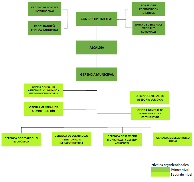 Nota. La figura muestra el organigrama de la Municipalidad Distrital de Paucara, la cual fue adecuada al marco normativo vigente. Reglamento de Organización y Funciones de la MDP vigente.