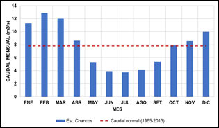 Así mismo en la figura (4) se muestra los caudales medios mensuales para la subcuenca Chancos para el período 1965 – 2013.