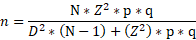 Entonces, a un nivel de significancia de 95% y 5% como margen de error n fue:
